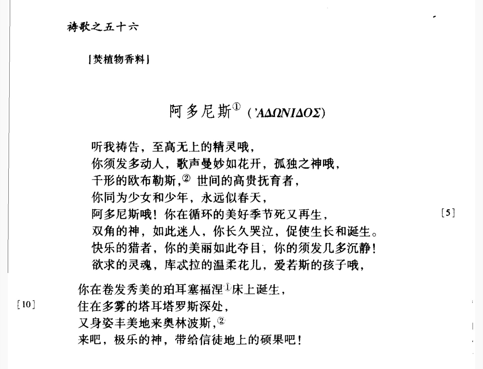 - 密耳拉与父亲乱伦后,变为没药树生下,阿佛洛狄忒十分喜爱他,交给珀耳塞福涅扶养。珀耳塞福涅也爱上了他,后女神争执,宙斯决定让阿多尼斯一年分为三段,四个月在冥府,四个月和爱神,剩下四个月自行决定。阿多尼斯将自己的四个月也给了爱神。